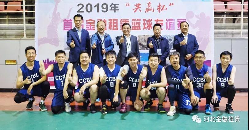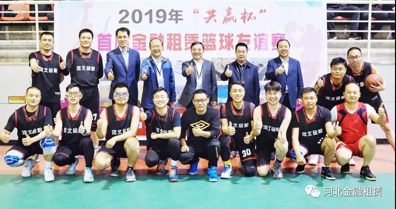 ▲河北金租總裁王永生(后排左五)、建信金租副總裁徐大公(后排左四)、中鐵金控租賃公司副總經(jīng)理周光明(后排右四)、河北金租副總裁李永德(后排左三)、河北金租工會主席石拴江(后排右三)等與河北金租籃球隊。